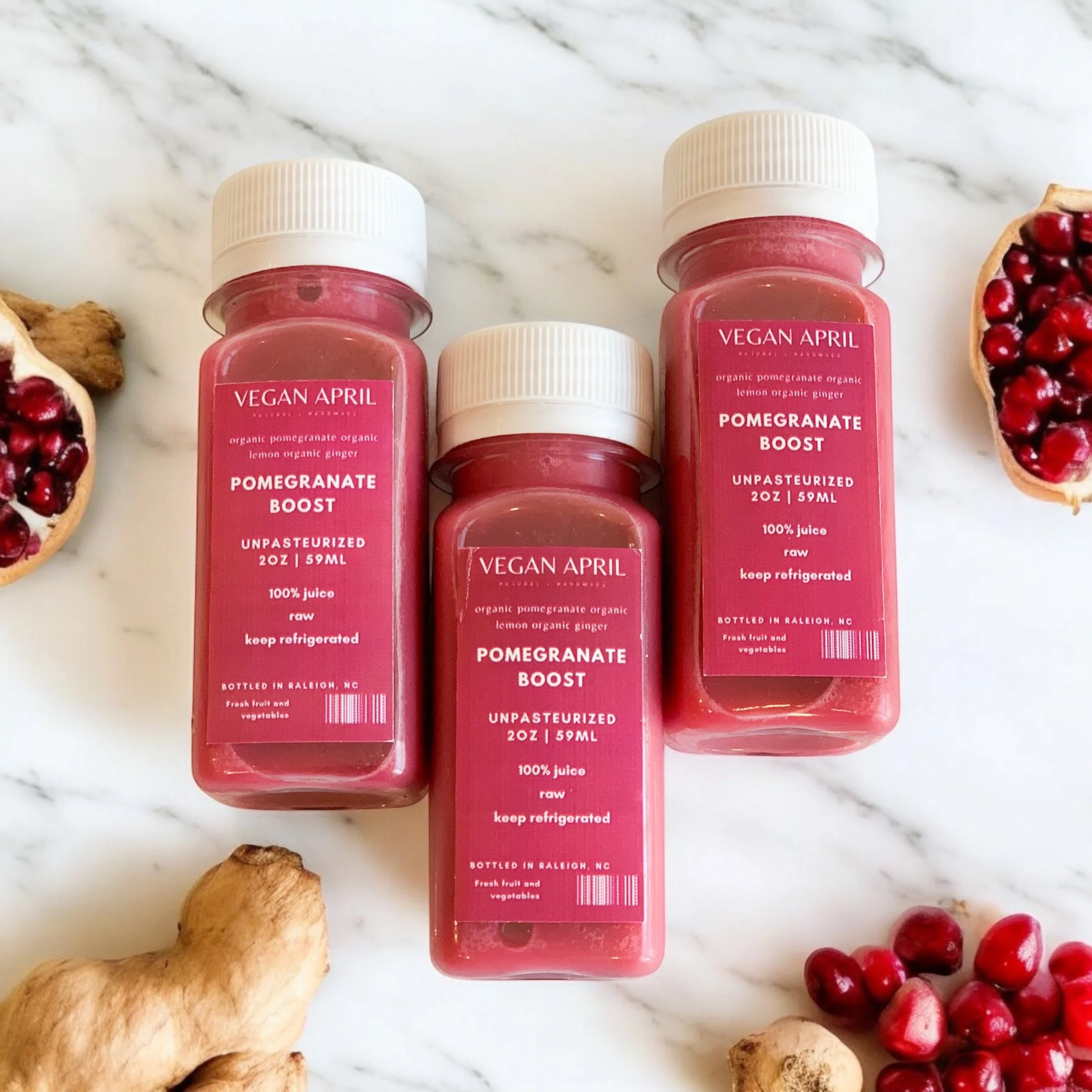 Fuel your day with our Pomegranate Ginger Shot! This zesty blend of pomegranate, ginger, and lemon is packed with antioxidants, a spicy kick, and a burst of citrusy freshness. Perfect for boosting your immunity and giving you an energizing pick-me-up in just one sip.
